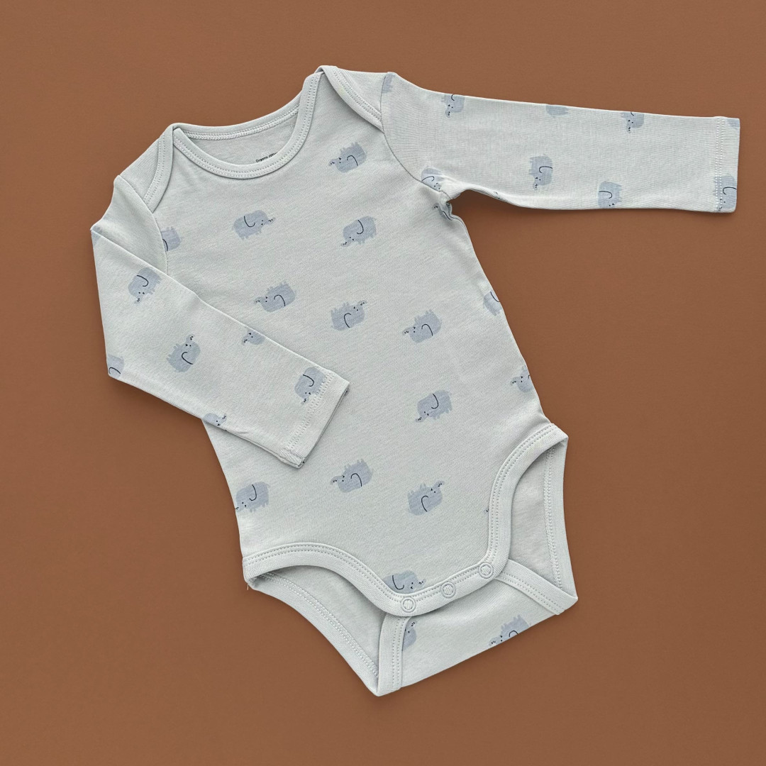 | НаименованиеПолное | Боді з довгим рукавом, блакитний/принт слоники | |