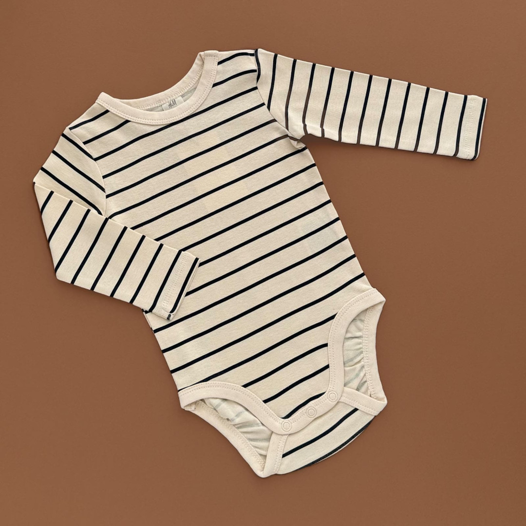 | НаименованиеПолное | Боді з довгим рукавом, кнопки на плечі, світло-бежевий/полоска | |