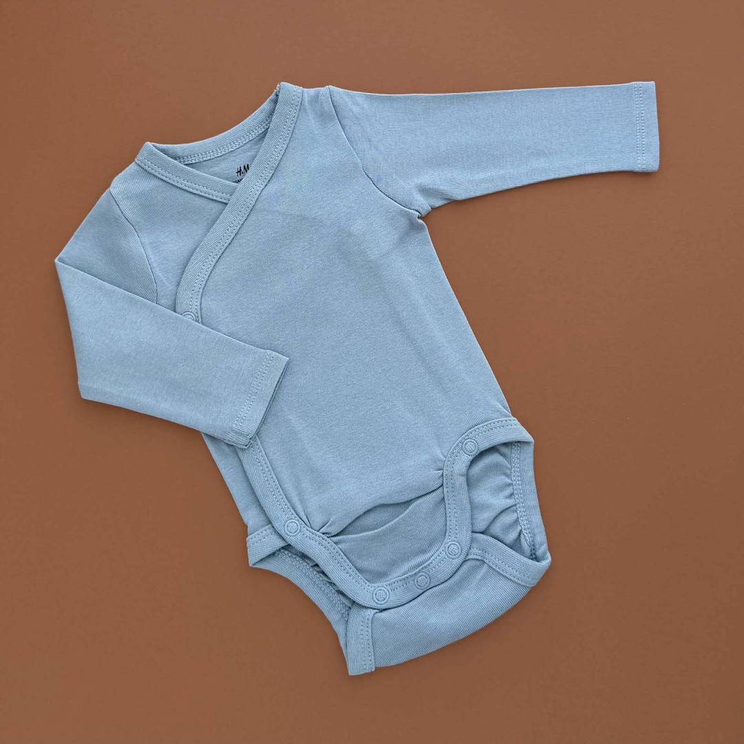 | НаименованиеПолное | Боді з довгим рукавом, на запах, блакитний | |