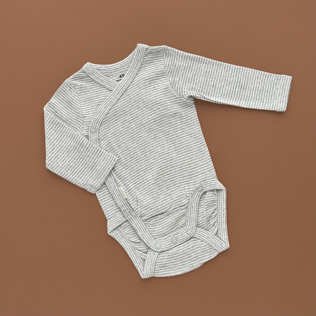 | НаименованиеПолное | Боді з довгим рукавом, на запах, сірий/полоска | |