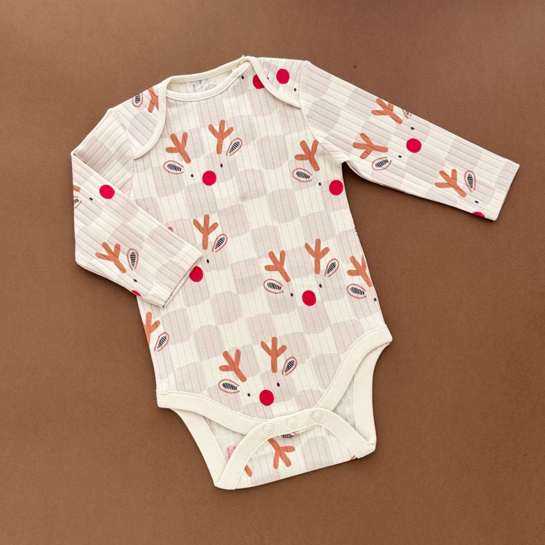 | НаименованиеПолное | Боді з довгим рукавом, бежевий/рубчик клітинка Мордочка Оленятка | |