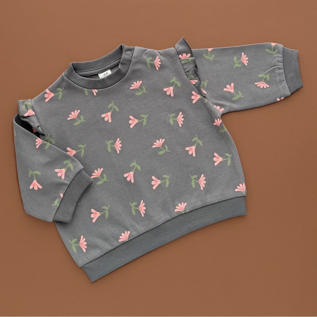 | НаименованиеПолное | Світшот H&M, двонитка, тоненька байка, темно-сірий/рожеві квіти | |