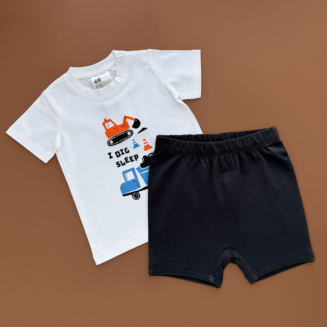 | НаименованиеПолное | Костюмчик Футболка з шортами, білий, чорний/транспорт | |